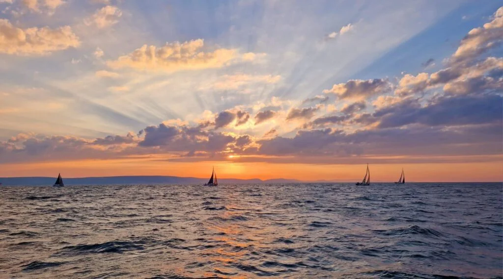 ⛵️ Pour la manche retour, le départ a été donné à 5h30 heure anglaise. Avec une mer clémente et un vent de 11 à 22 nœuds en nord-est, la flotte n’a pas tardé à traverser la manche, en arrivant à Cherbourg aux alentours de 15h/17h.